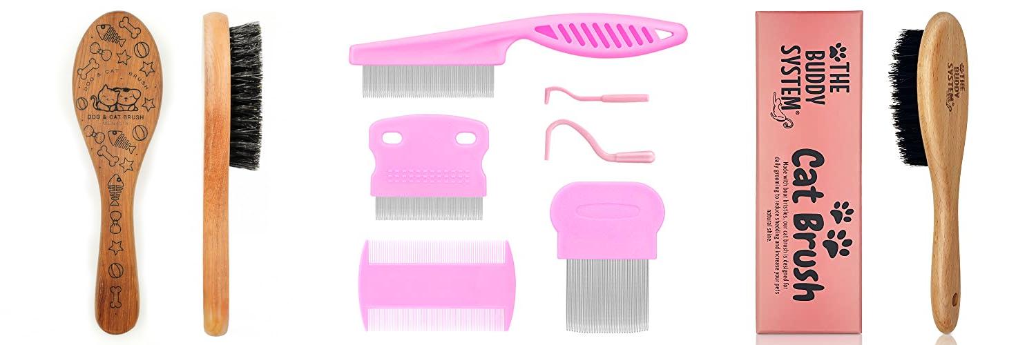 3. The Buddy System Cat Brush with Boar Bristle and Wooden Handle
