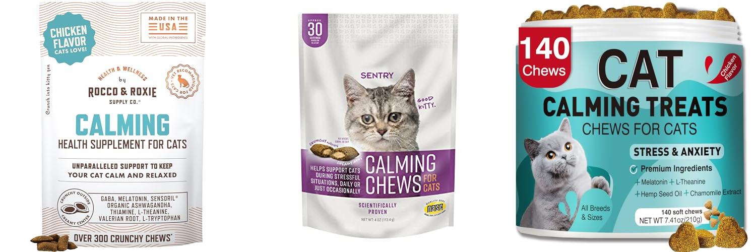 • These chews use natural helpers like L-Tryptophan and Chamomile to calm your cat.
