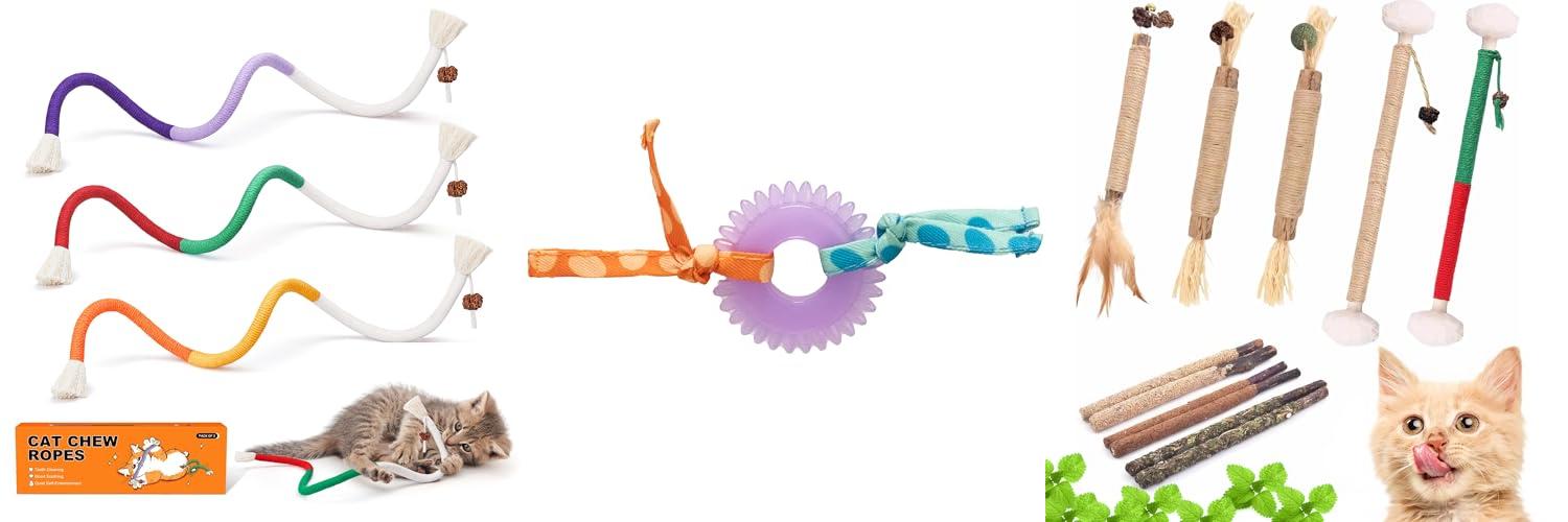 - These toys are great for teething kittens and adult cats. They help clean your cat’s teeth and freshen their breath.