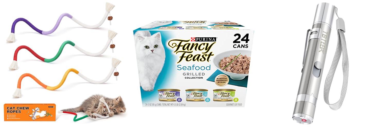 • Toys: Toys keep your cat active and entertained. Interactive toys that you play with together are great for bonding. Wand toys, laser pointers (used responsibly!), and puzzle feeders are popular.