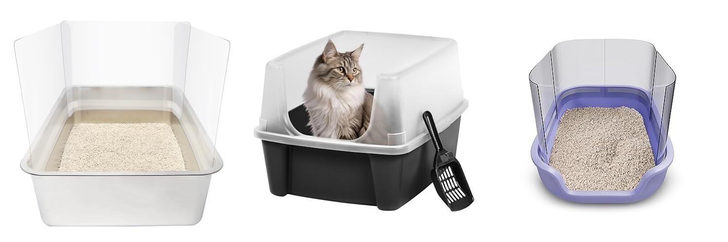 A: The best types are litter boxes with very high sides or top-entry litter boxes. These designs are made to contain messes.