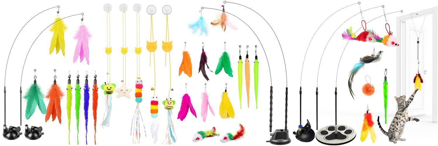 - Variety is the spice of life: The 3-in-1 design means you get two sets, each with multiple interchangeable toys like feathers, balls, and mice. This keeps things fresh and exciting for your cat.